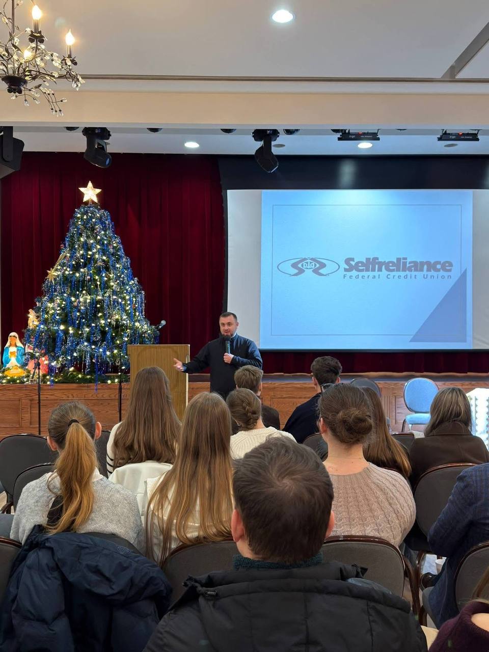 Практичний вимір теми представив Віталій Кутний, CEO Selfreliance Federal Credit Union, який поділився базовими принципами фінансової грамотності, заохотив до заощадження та ознайомив із правилом 50/30/20 як інструментом відповідального фінансового планування. Також було підкреслено унікальну роль кредитної спілки Selfreliance (Самопоміч) як прикладу економічної моделі, побудованої на християнських цінностях і взаємодопомозі української громади. Зустріч завершилася обговоренням у малих групах, спільною молитвою та неформальним спілкуванням.