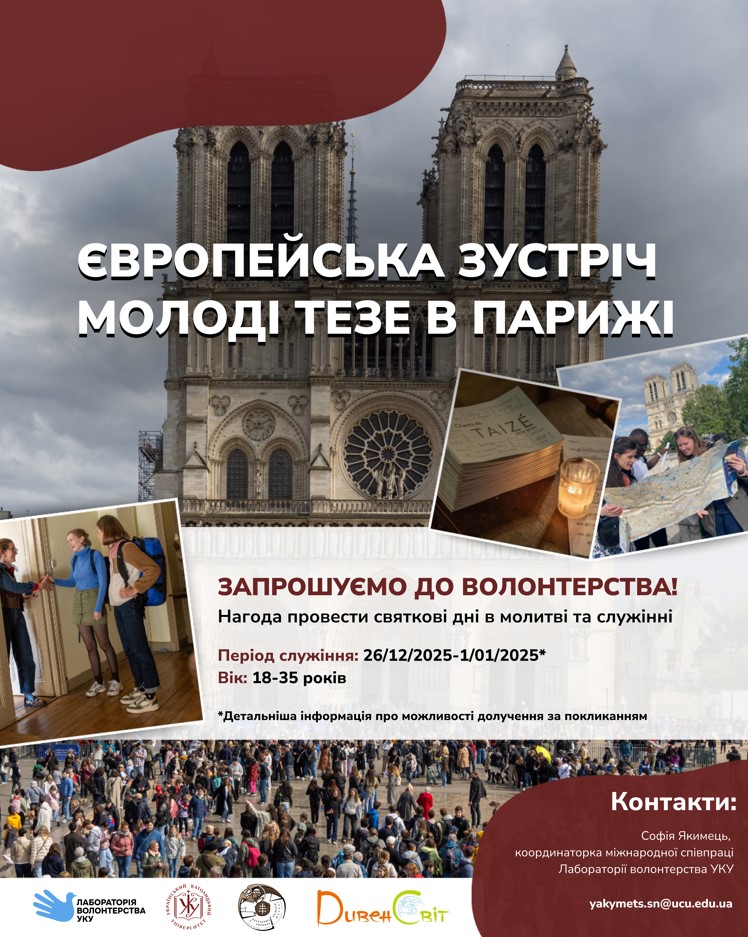 Запрошуємо Вас долучитися до Молодіжної зустрічі Тезе в Парижі! Це можливість провести святкові дні у молитві та служінні разом із тисячами молодих людей з усього світу, ставши волонтером.