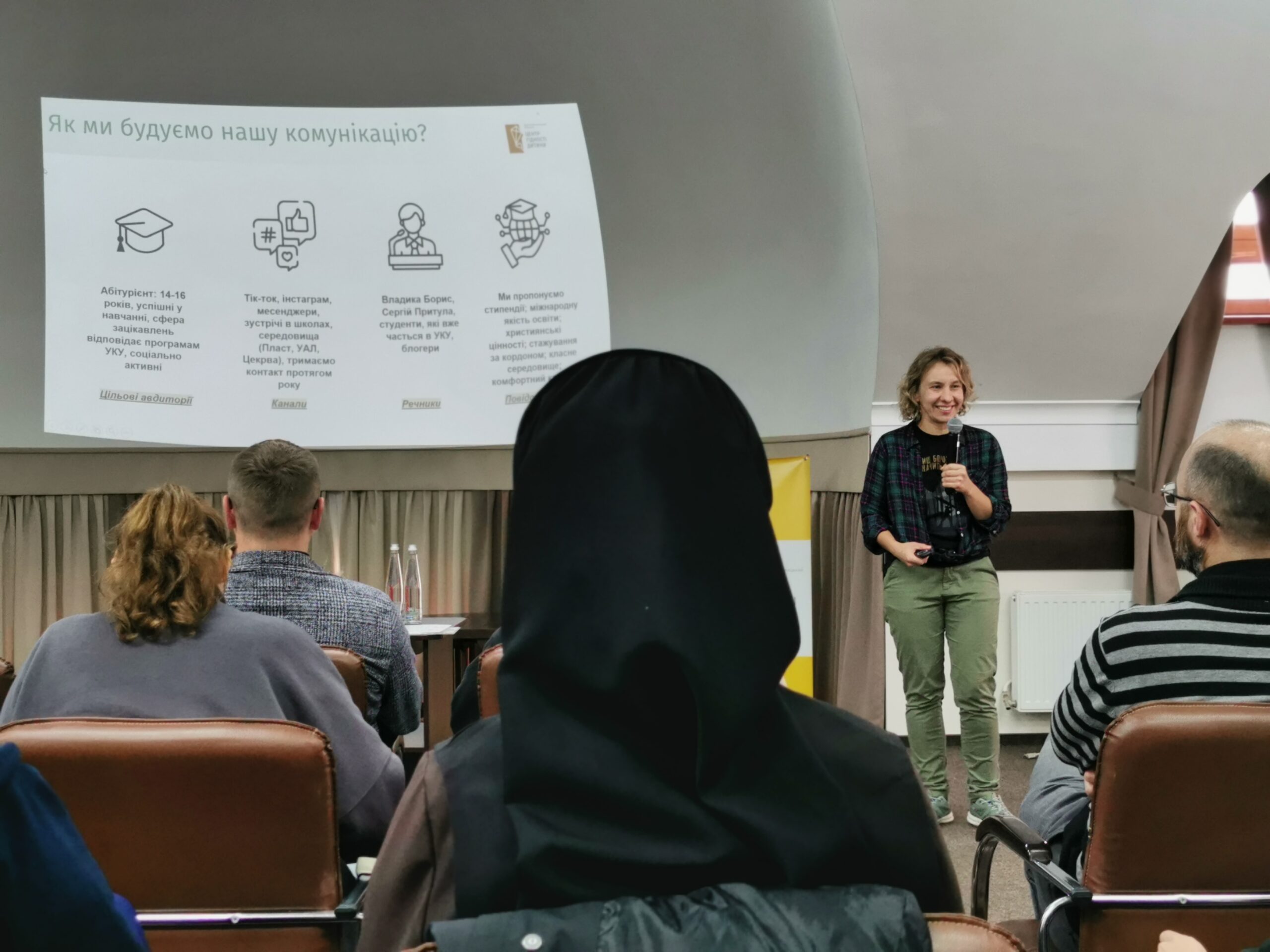 Вероніка Саврук, керівниця відділу інформації та маркетингу УКУ, розповіла, як будувати комунікацію із різними аудиторіями та як супроводжувати спільноту під час зголошення випадків насильства. Тут важливі швидка, але виважена реакція, робота з фактами. Організація повинна бути послідовною у комунікації та готовою брати на себе відповідальність і не замовчувати проблему. Також криза може бути хорошим поштовхом до оновлення взаємодії, об’єднанням спільноти довкола цінностей і подальшим зміцненням довіри. Фахівчиня поділилася алгоритмами дій в кризових ситуаціях, навела приклади, як можна виходити із них.