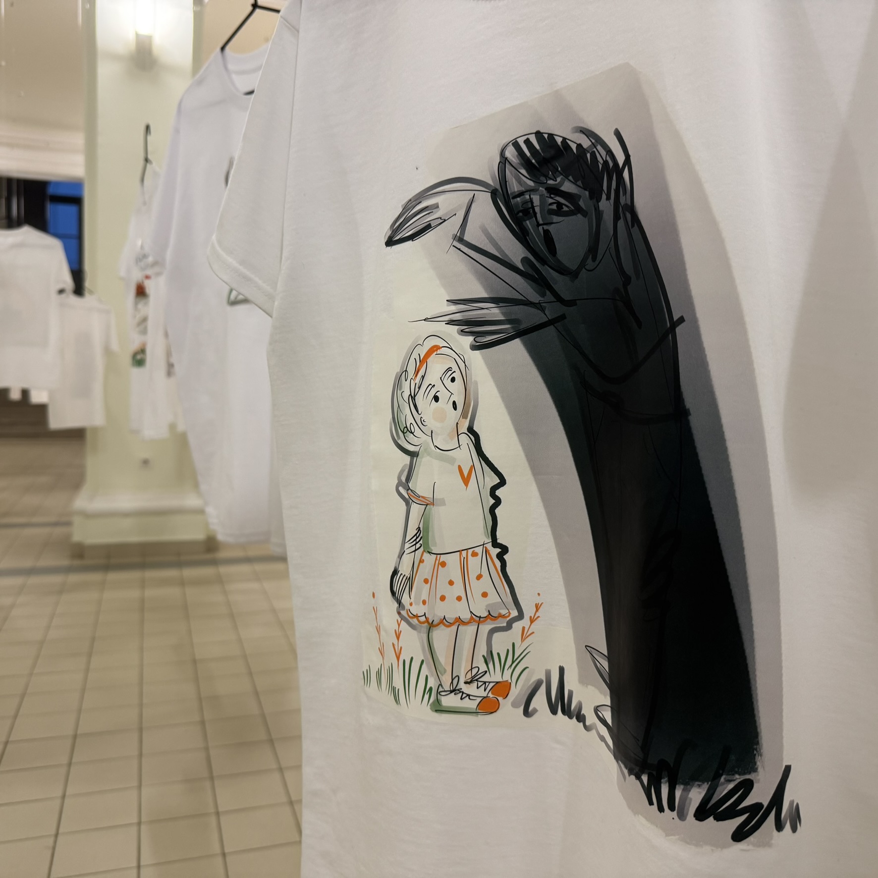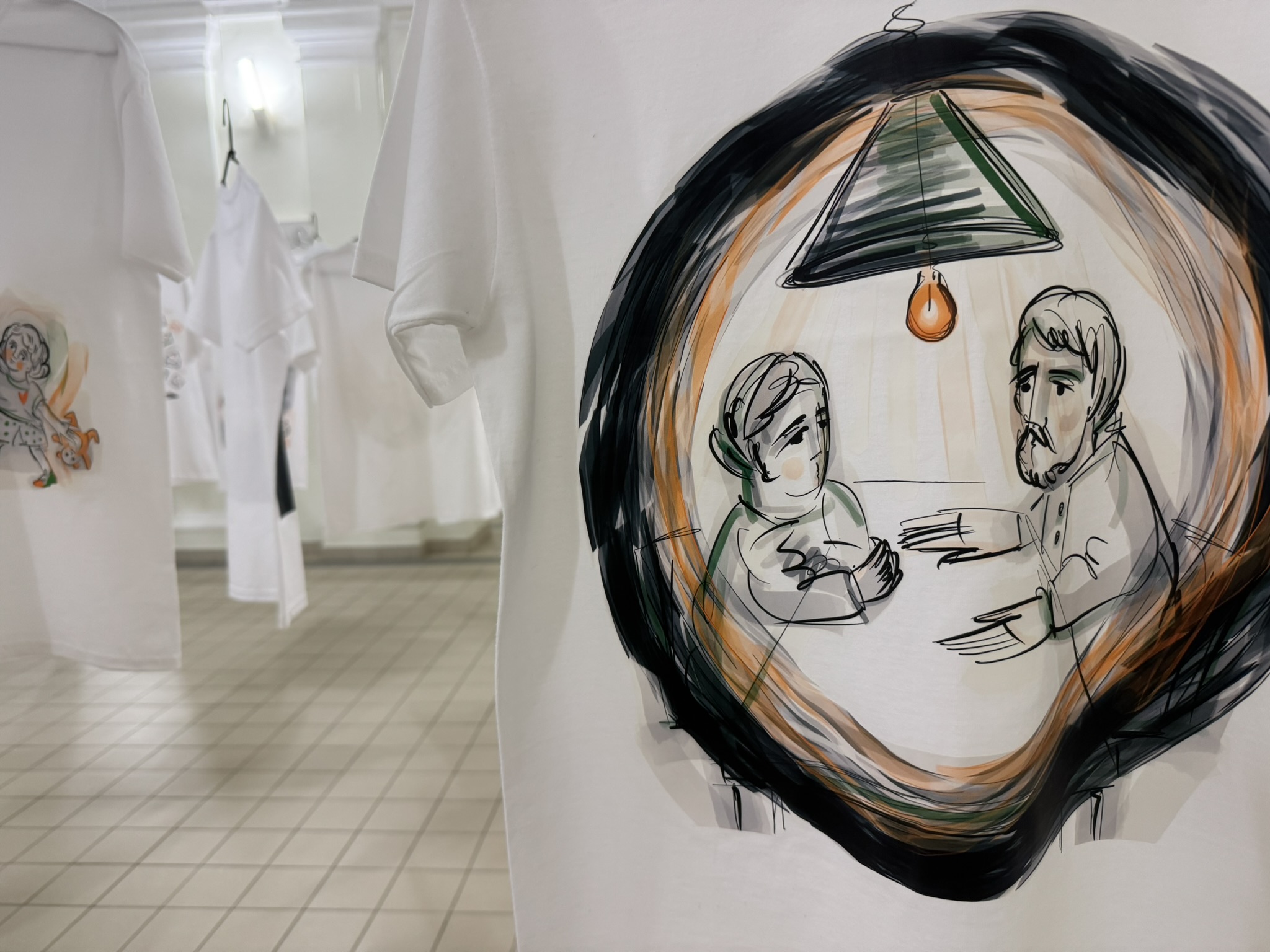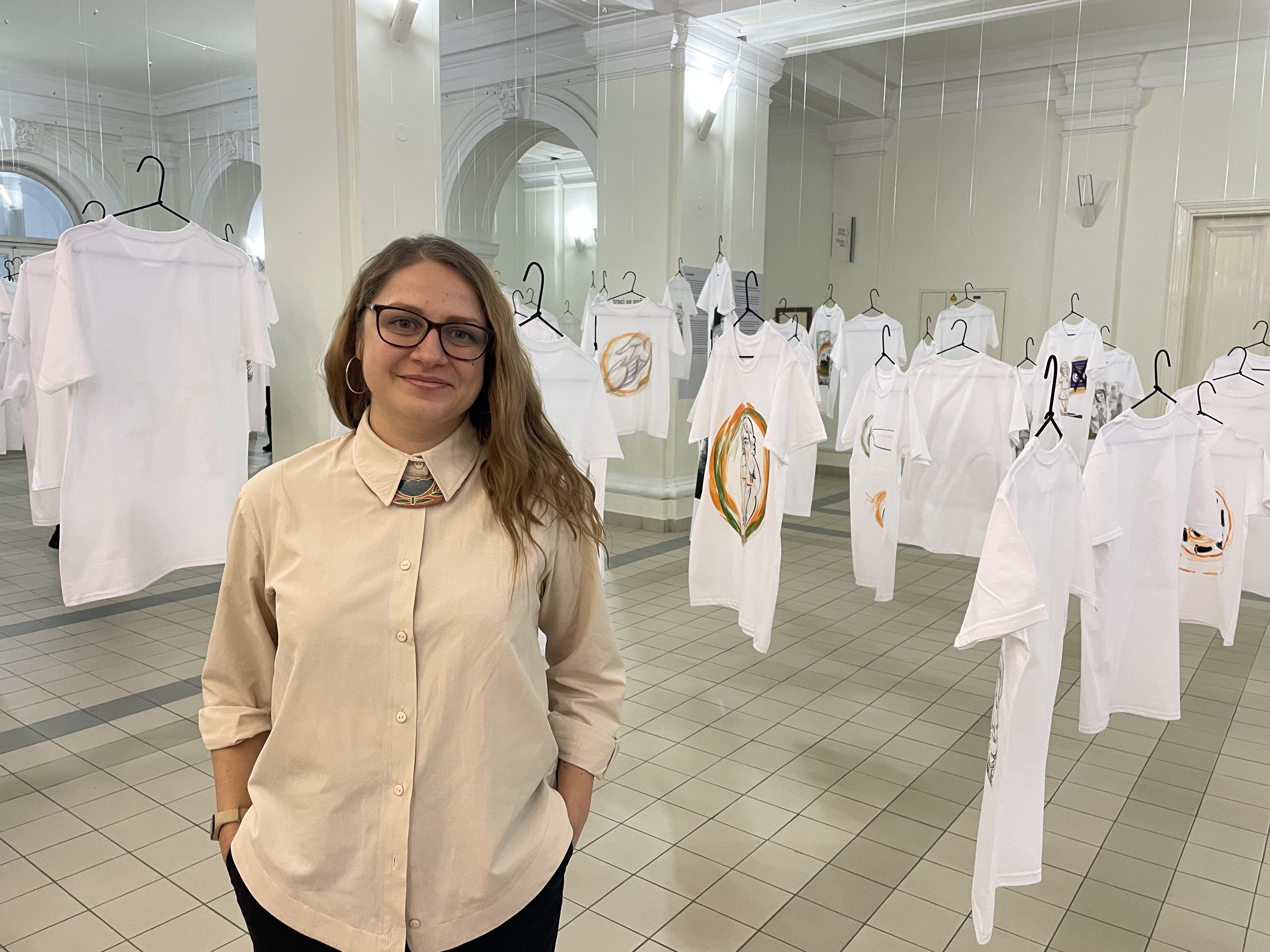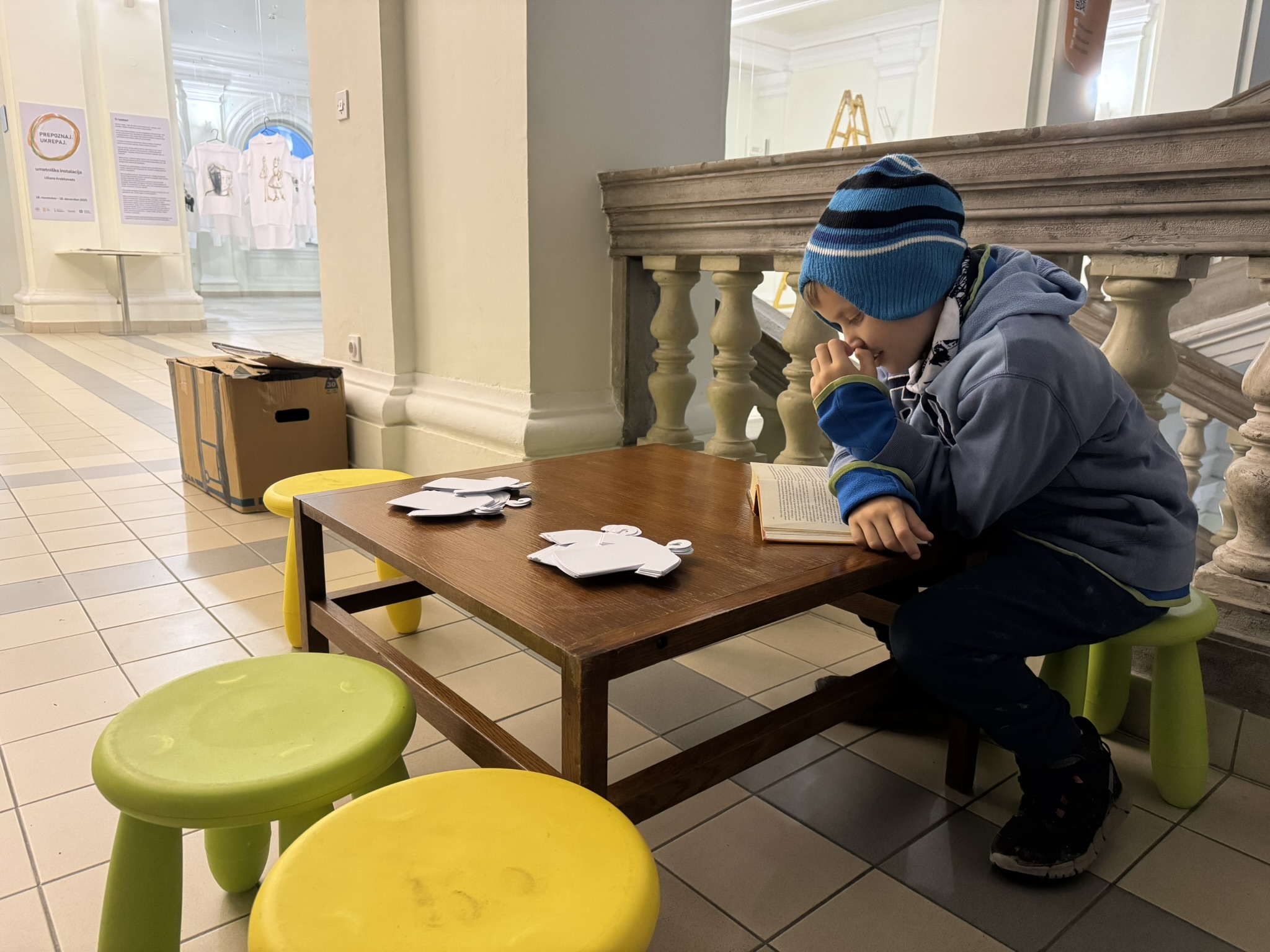 Дитячий простір виставки, який дорослі можуть використати для рефлексії та розмалювати паперові футболки