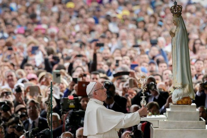 Папа Римський Франциск канонізував двох дітей-пастухів, яким століття тому, саме 13 травня з’явилася Діва Марія. 13 травня 1917 року, як стверджує римо-католицька церква, поблизу португальського міста Фатіма трьом дітям-пастухам явилася Богородиця. Вона нібито розповіла їм про майбутн...