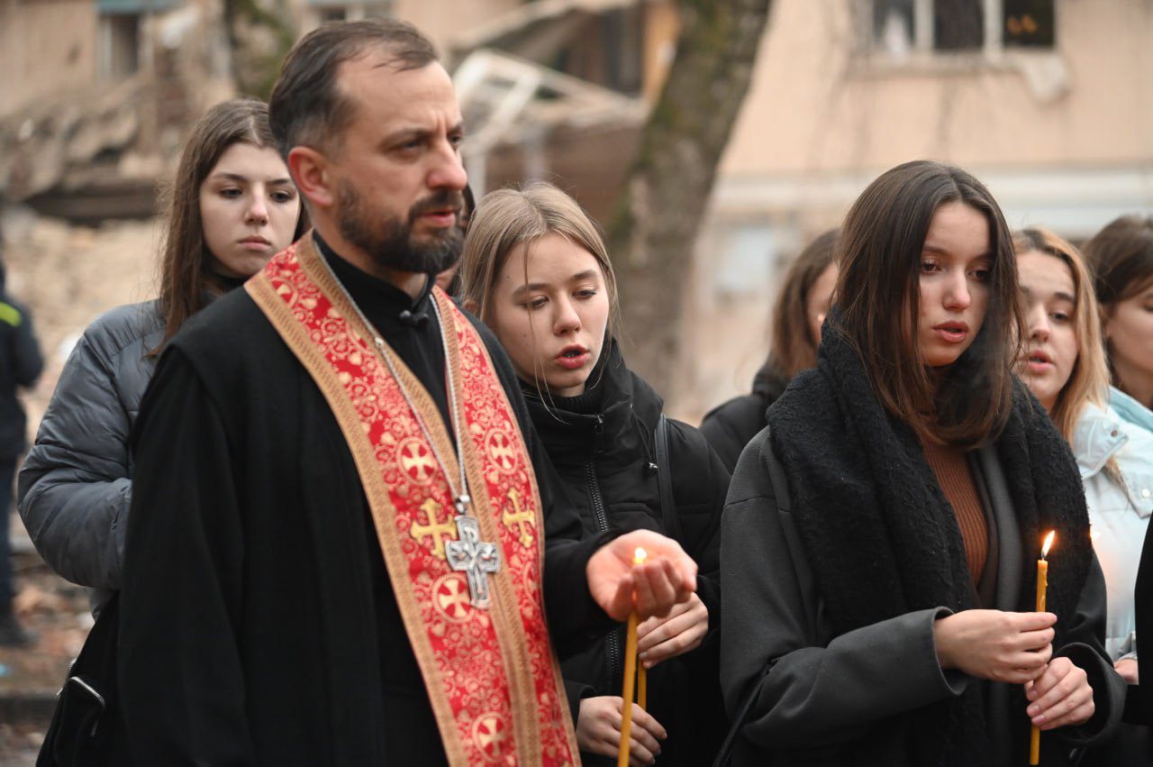 Після короткої молитви на місцях ураження, відбулася загальноміська молитва молодіжних спільнот в храмі Архистратига Михаїла, котрий став також тимчасовим гуманітарним штабом УГКЦ, для допомоги усім постраждалим від ракетного удару.