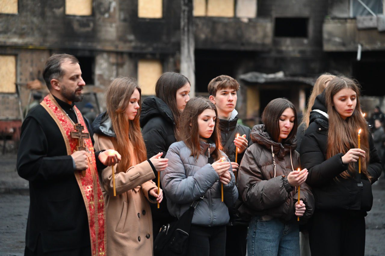 У Свято Входу в Храм Пресвятої Богородиці - тернопільська молодь молилася за жертв ураження на місцях бомбардувань, та за всіх які постраждали від ракетної атаки на місто, за усіх рятувальників, медичних працівників та всіх містян.